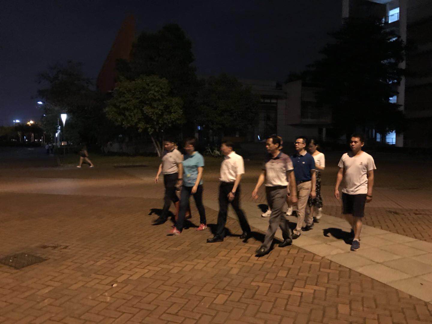 2018年6月4日21时,广外党委副书记李云明带领保卫处、学生处、学生就业指导中心等有关单位工作人员巡查大学城校区。